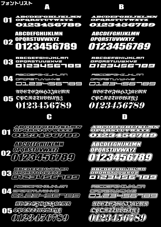 ゼッケン:101:フォントDの2 など